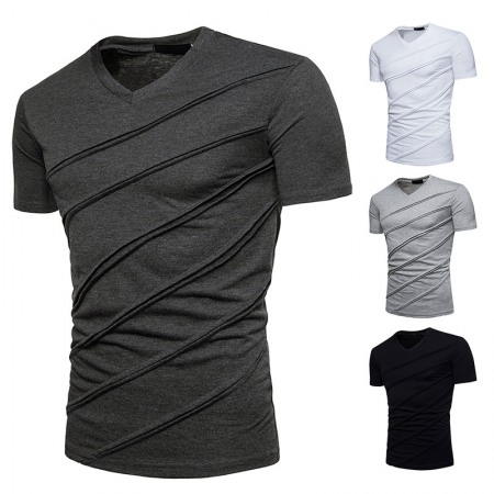 New Men's Plus Size Pleated Short-Sleeved T-Shirt