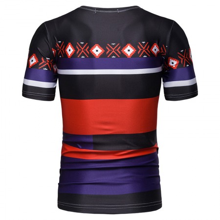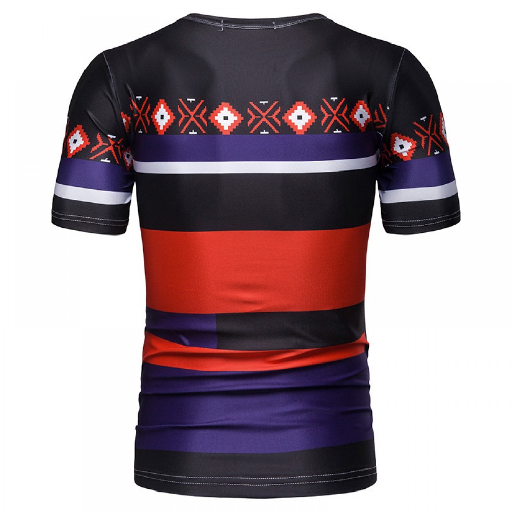 New Summer Men's Short-Sleeved T-Shirt Mens Contrast Striped Slim Casual T-Shirt