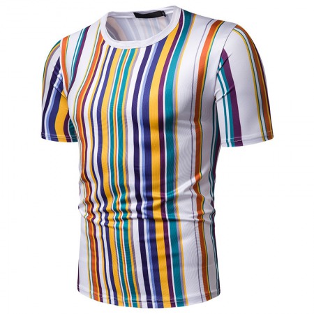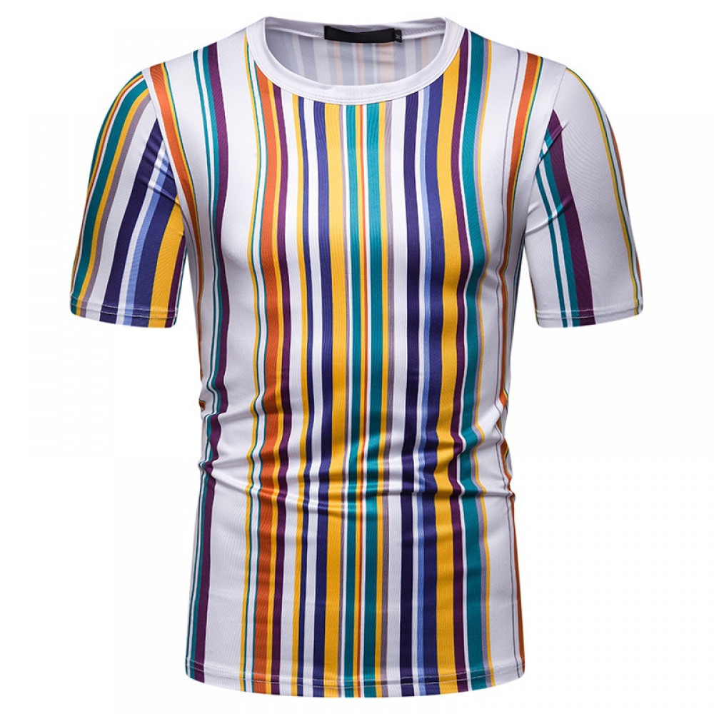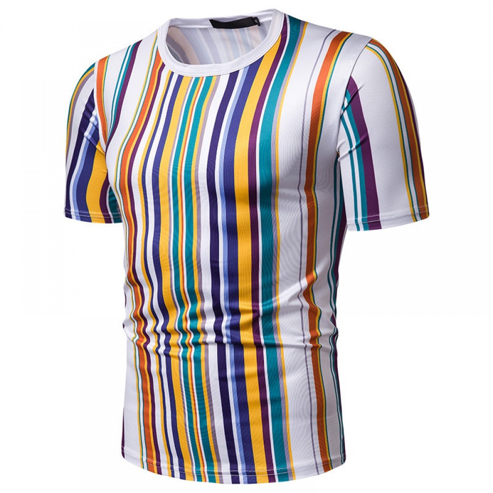 New Summer Men's Short-Sleeved T-Shirt Mens Contrast Striped Slim Casual T-Shirt