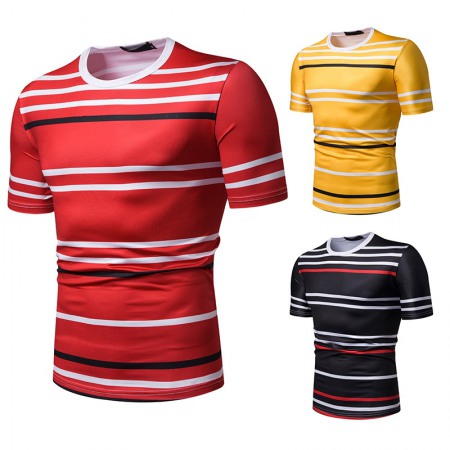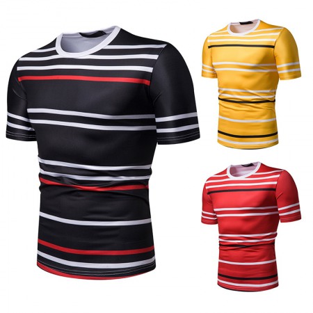 Summer Men's Short-Sleeved T-Shirt Mens Contrast Striped Slim Casual T-Shirt